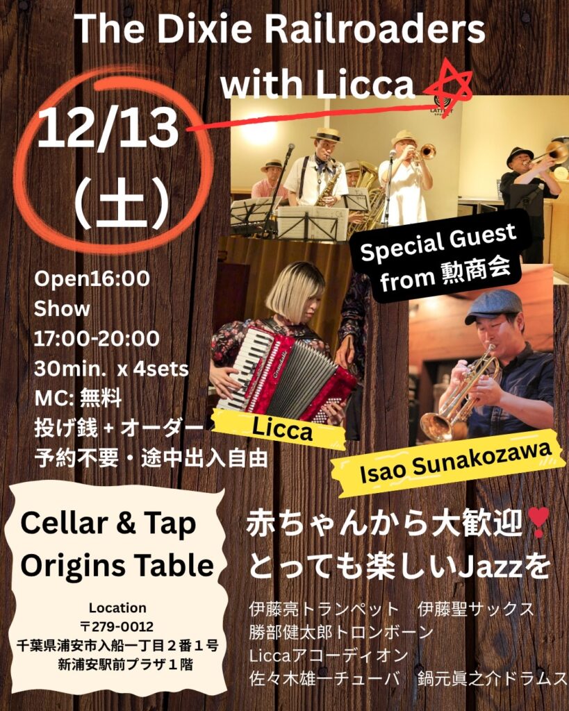 伊藤亮(tp), 伊藤聖(sax,cl),Isao Sunakozawa(tp),佐々木カルロス雄一(tuba),勝部健太郎(tb)高木梨花(acco), 鍋元眞之介(dr)