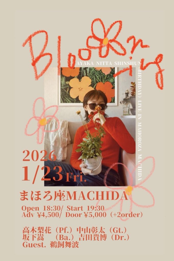 新田絢加(vo), 鵜飼舞波(guest vo), 高木梨花(p), 中山彰太(gt), 坂下嵩(ba), 吉田貴博(dr)